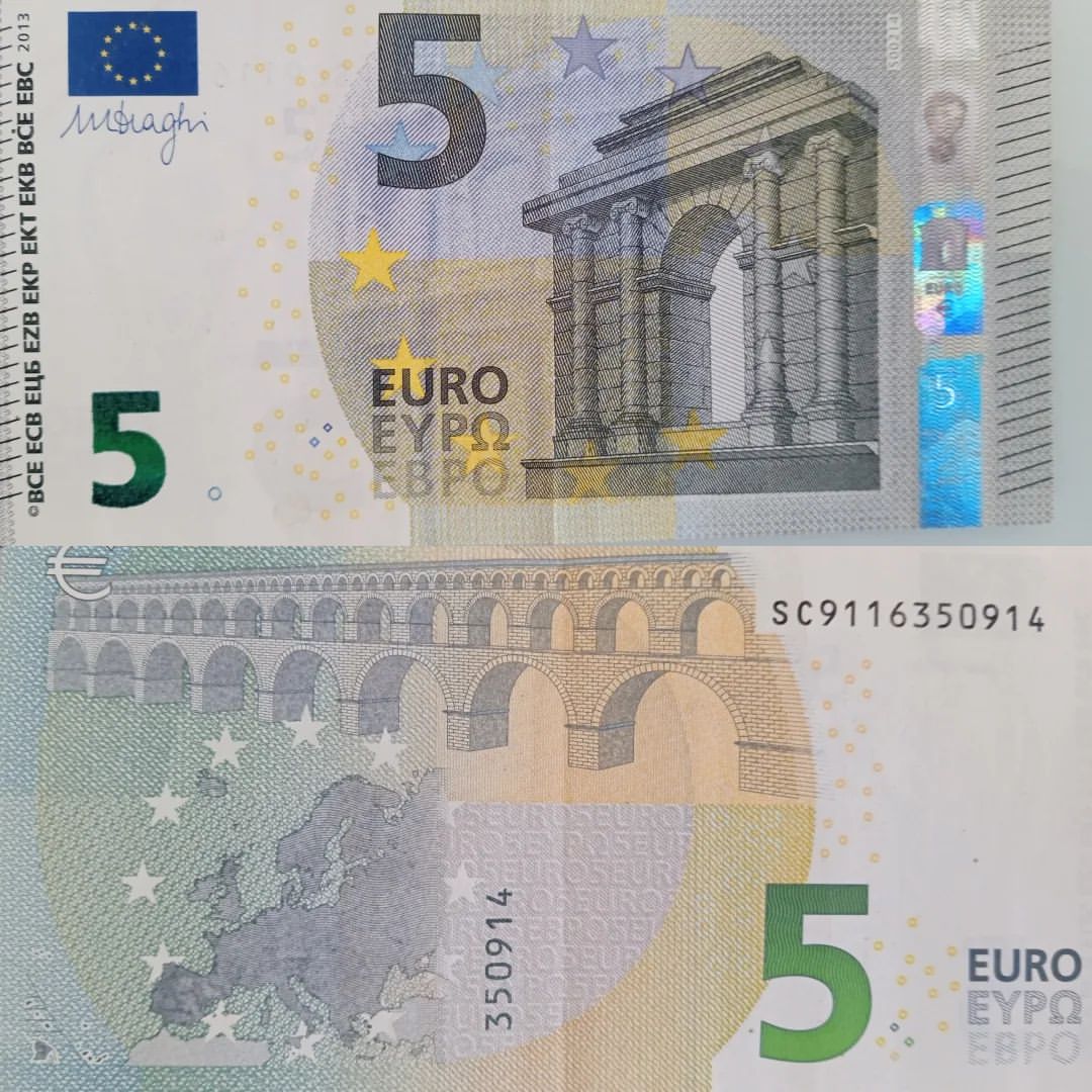- Each fake 5 Euro bill includes a convincing watermark that becomes visible when held up to the light, closely mimicking the watermark found on authentic Euro notes.